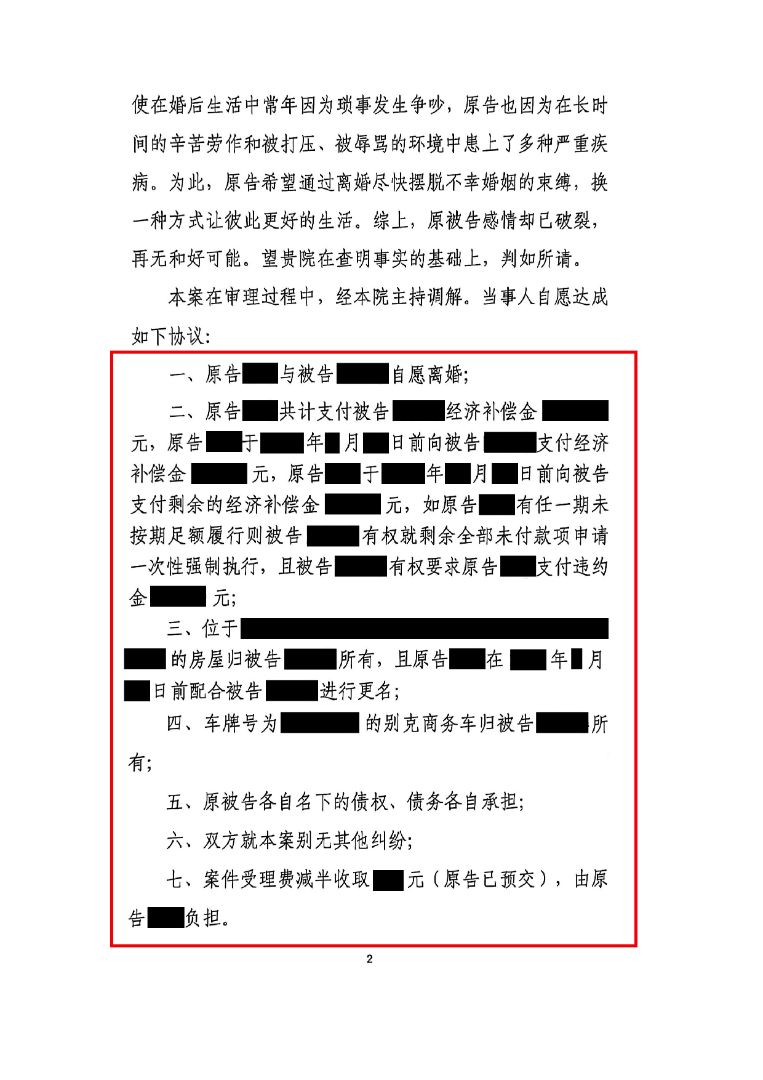 最终,双方达成调解协议:解除婚姻关系,婚内全部财产归闫某华所有,曾某配合完成财产更名,并一次性支付损害赔偿款,相关费用及履行细则均明确约定,确保闫某华全额权益落地。