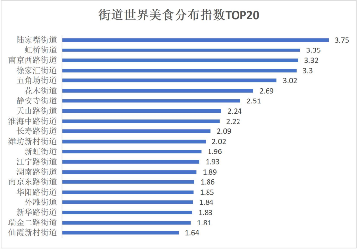 作为国际化大都市的上海,不仅有数以万计的外国投资企业和机构、数十万居住在此的境外友人,还有全球数量最多的咖啡馆。纵观全球知名的国际化大都市,要成为领先的国际消费中心城市,同时也要具备“美食之都”的盛誉。因此,集聚世界各地美食,就成为具有国际化消费中心城市的重要标志,它是支撑世界级城市经济规模、科创水平、文化多样性和人才吸引力的功能性保障。同时,也是衡量上海各区、镇和街道投资环境、营商环境、和国际化水平以及生活品质的一个可量化、可比较的“窗口”,通过“以小见大”的数据,来描绘不同区域的便利度和开放度。