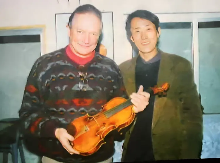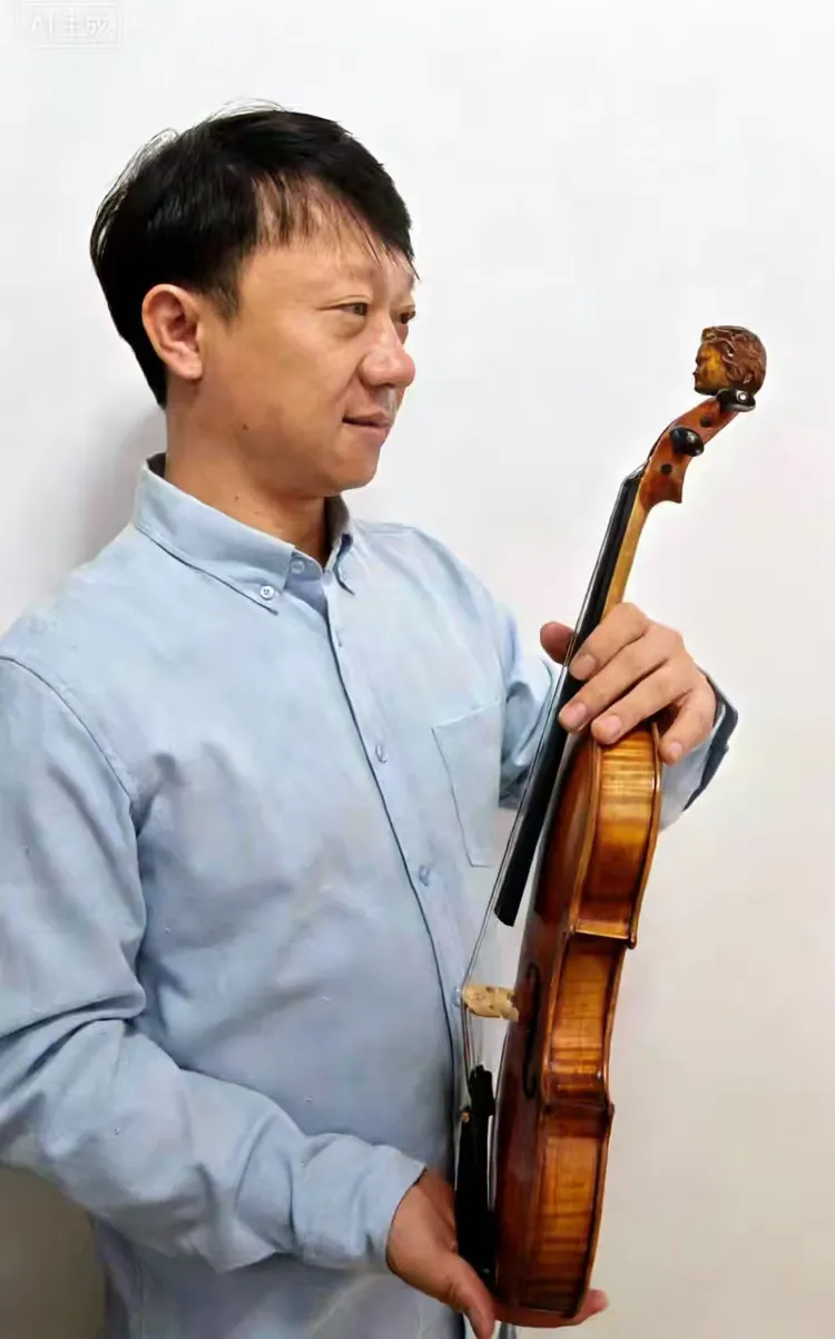 延边交响乐团首席徐晨先生欣赏着他收藏的《许氏提琴》