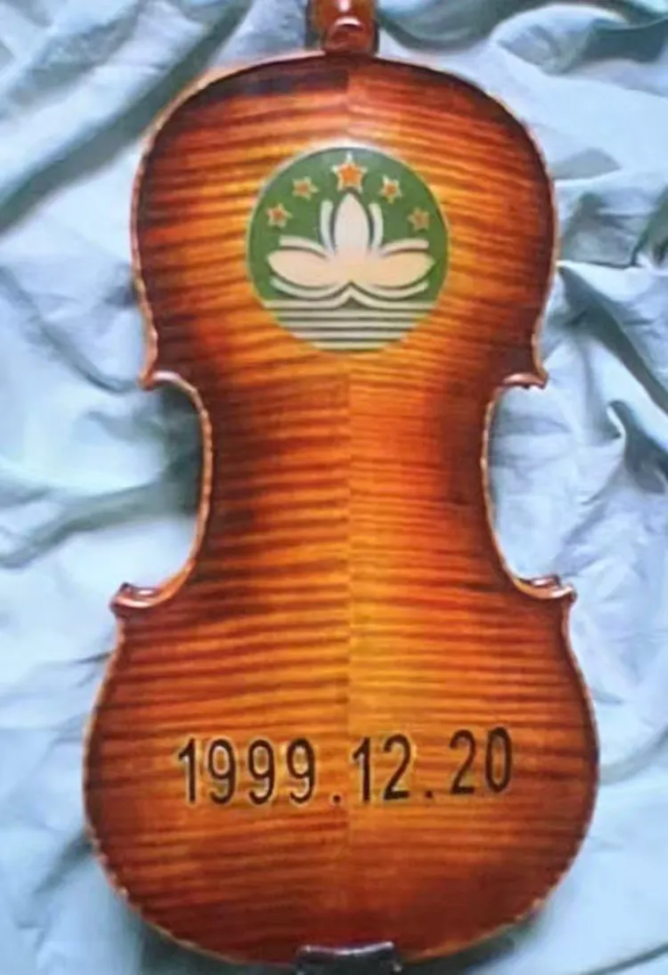 采用景泰蓝的掐丝镶嵌工艺制造的澳门回归提琴