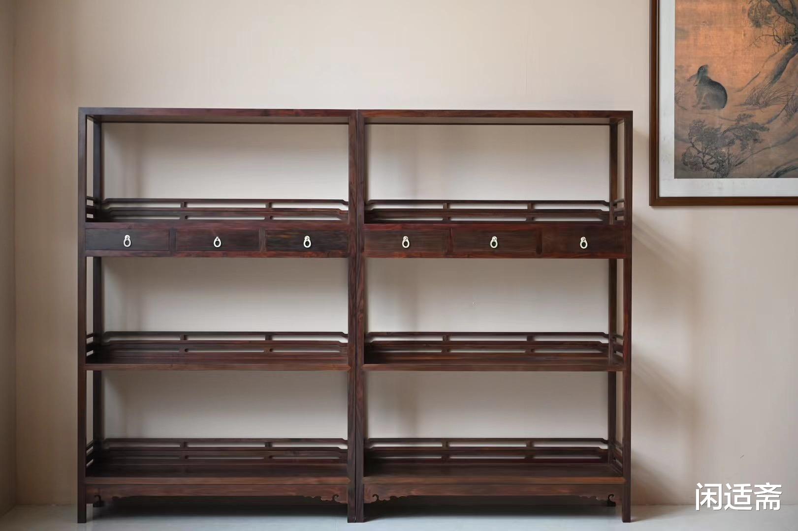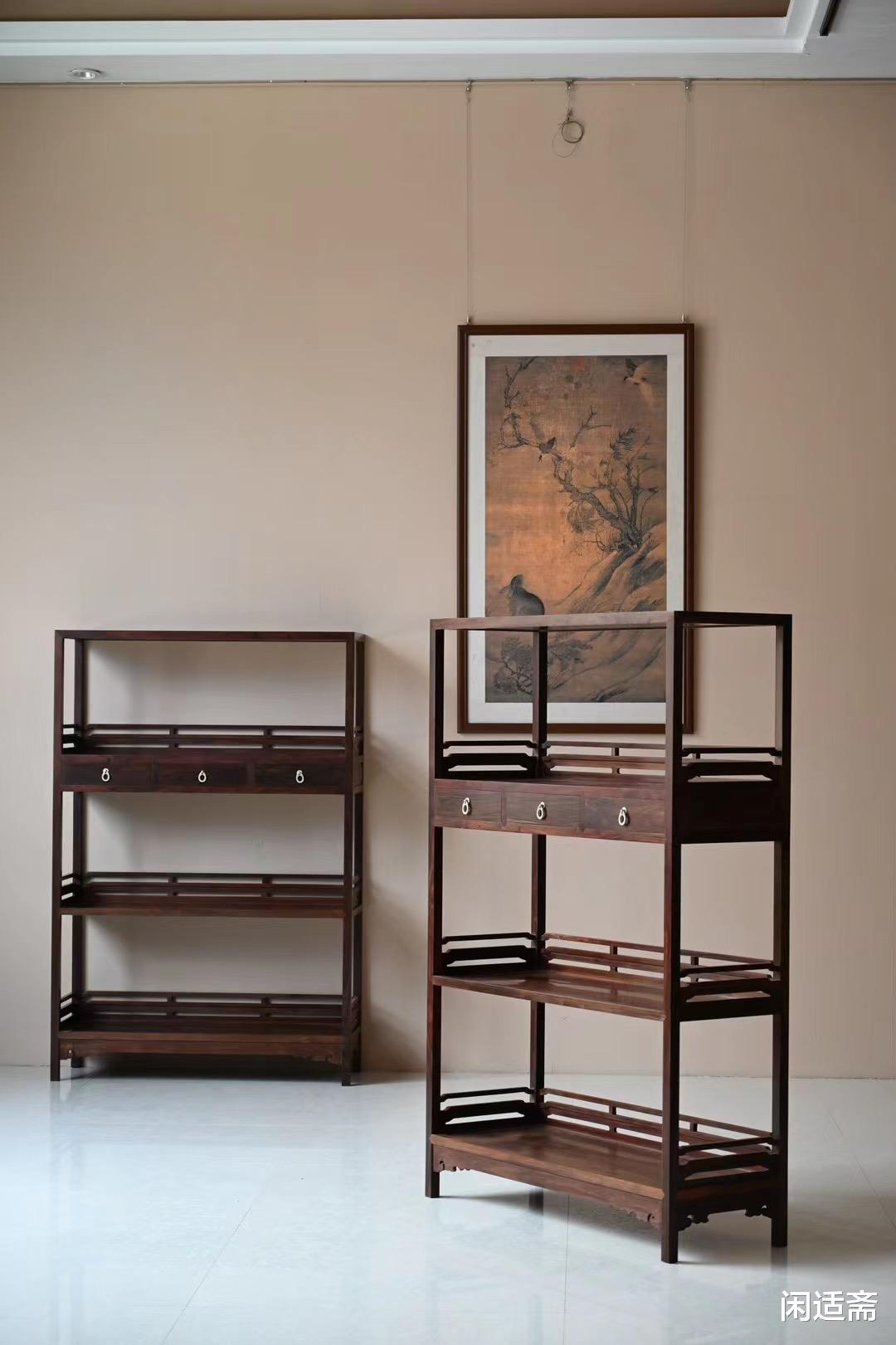 此对架格可置于书房,分层陈列古籍善本、青瓷雅瓷、文房四宝,抽屉收纳印章、印泥等小件;亦或安放于厅堂,可陈列奇石、玉雕等藏品,成为空间中的视觉焦点,尽显文人雅趣。