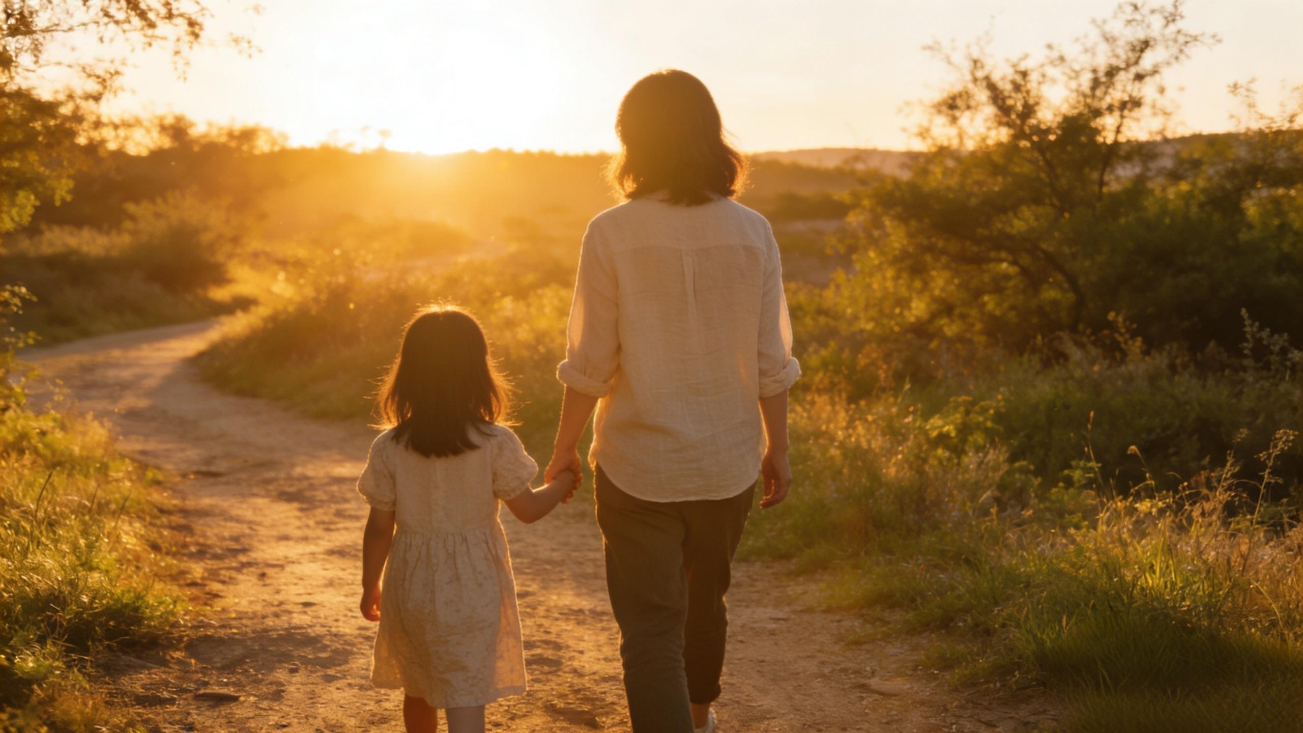 夕阳下,念念拉着我的手,仰着小脸,眼里满是期待地问我:“妈妈,我们要去哪里呀?”