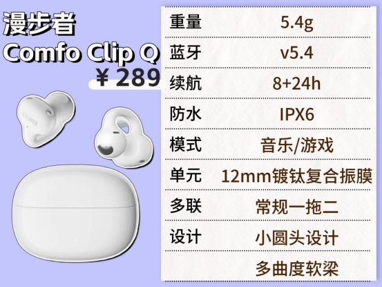其实开放式耳机分很多种,按形态或者传声的不一样,能分成挂耳、耳夹还有骨传导式。耳夹式就属于其中一种,它不用塞到耳道里,只要夹在外耳道上,就能实现不入耳的佩戴感,还能有开放式的听音效果,特方便。