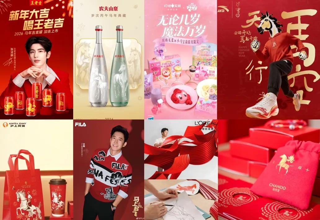 不得不说,这种基于姓名的符号映射,已成为品牌在春节这一流量洪峰中,规避认知门槛、换取确定性产出的“标准化套路”。除了代言人的抢位,生肖视觉符号的工业化复制同样在加速。