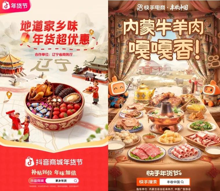 抖音商城“家乡年货”,快手电商“丰收中国” 图源:抖音