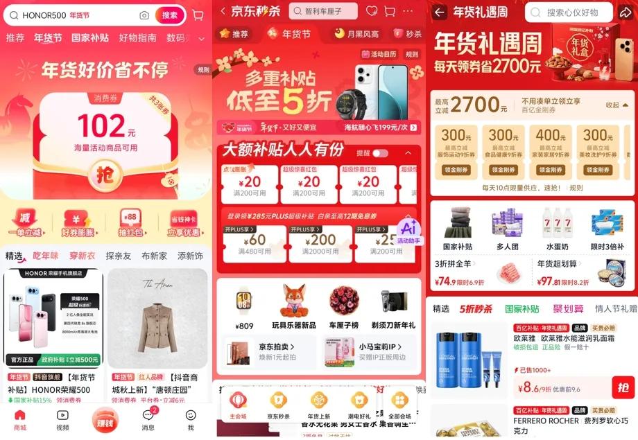 抖音商城、京东、天猫年货节各种优惠