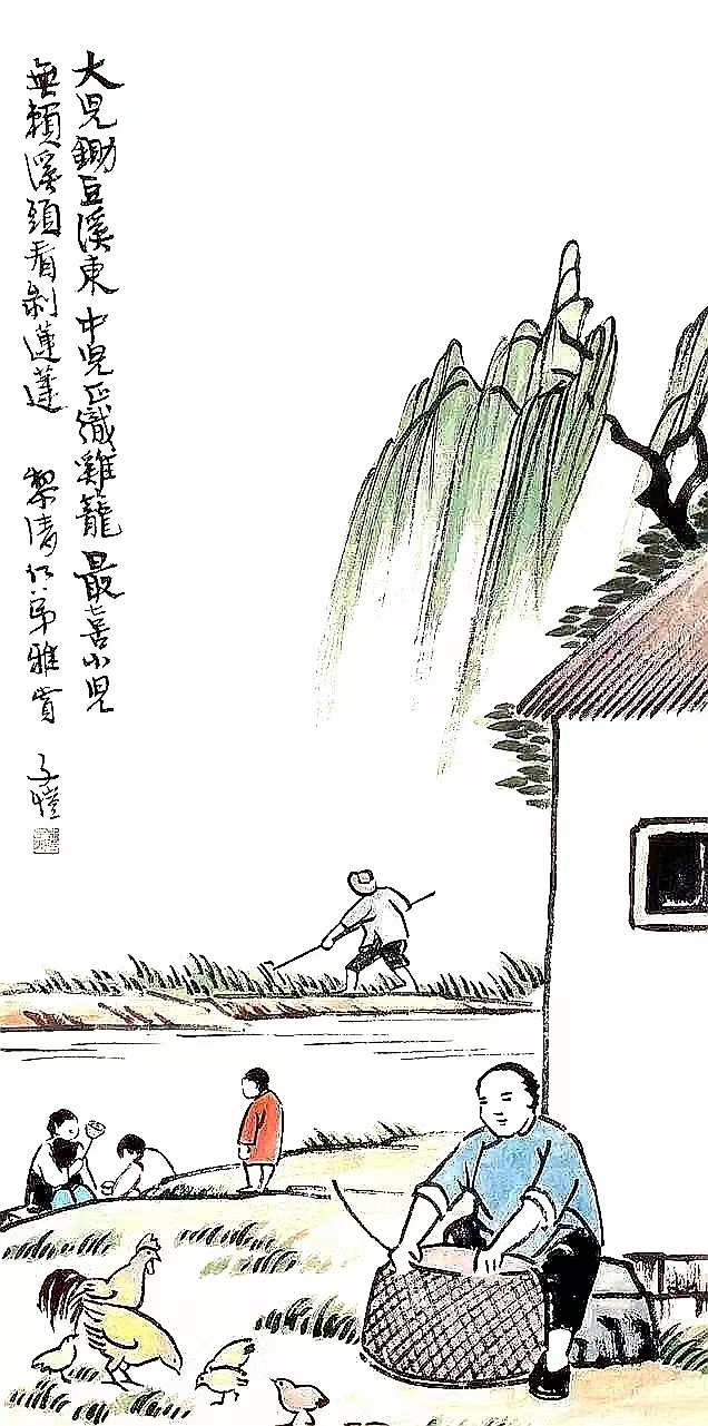 此词描绘了农村一个五口之家的环境和生活画面,借此表现人情之美和生活之趣。作者把这家老小的不同面貌和情态,以及他们的美好的农家生活描写得有声有色,惟妙惟肖,活灵活现,具有浓厚的生活气息,表现出作者对农村和平宁静生活的喜爱。全词以白描手法描述了农村的乡土风俗,呈现出一种清新宁馨的风格。
