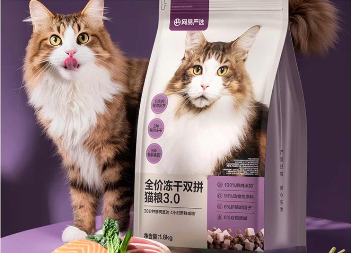 网易严选的猫粮的生产厂是合作的合规大厂,基础品控有保障,第三方检测报告能查到,核心营养指标没虚标。它不含麸质,低敏性没问题,主粮肉源是2种常见肉,基础营养够要是你不想单独买冻干,选这款挺方便的。