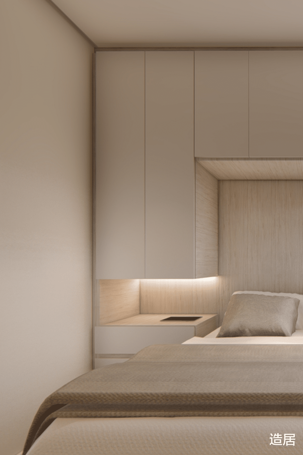 卧室:拒绝床头射灯直照眼睛,基础照明用顶面筒灯,床头装壁灯或简约吊灯做阅读照明,吊顶边装灯带做氛围照明,光线柔和不刺眼,助眠效果更好;