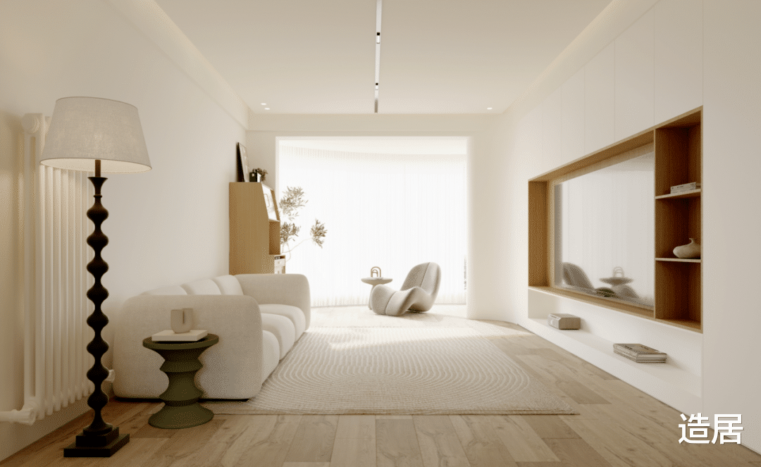 比如客厅装一盏简约的柔光吸顶灯做主灯,在沙发背景墙做小范围吊顶,装 2 盏防眩射灯洗墙,沙发旁放一盏落地灯,既不用全屋吊顶,又能通过局部灯光营造层次感,颜值不输全屋无主灯。