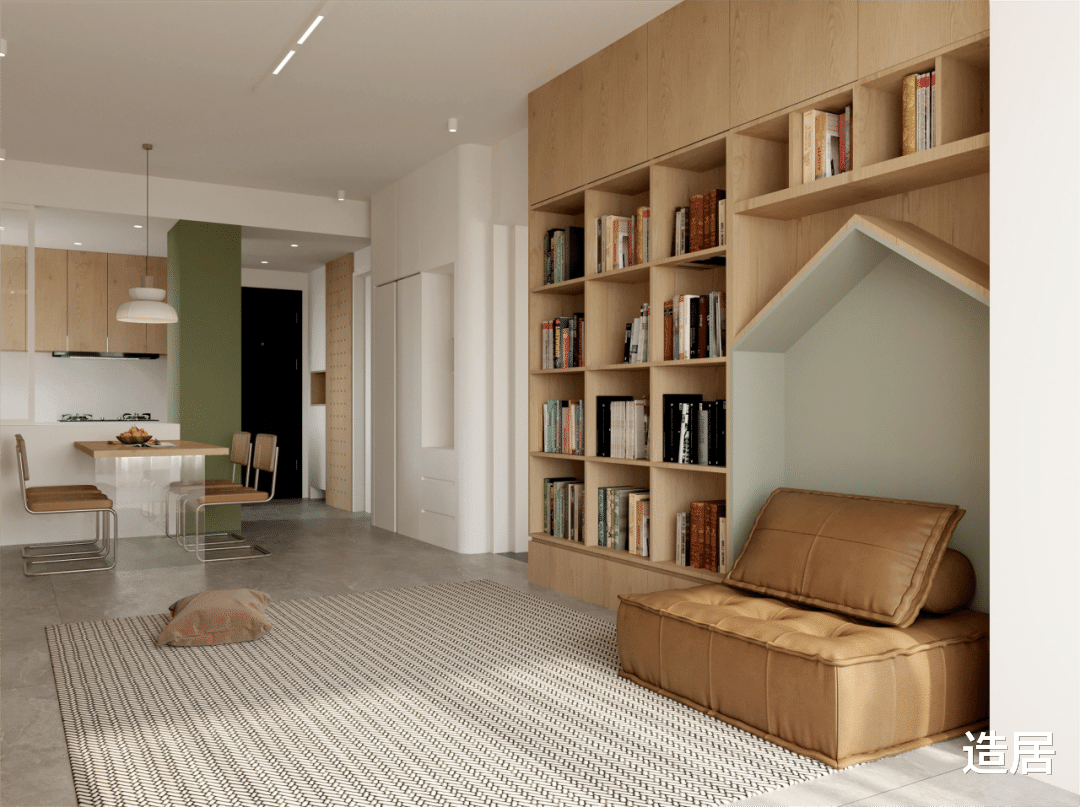 地面材料坚决别选亮面砖,反光性太强,会把顶面的灯具映得一清二楚,让人头晕,优先选柔光砖、仿古砖或木地板,哑光的表面不会反光,和无主灯的搭配度更高。