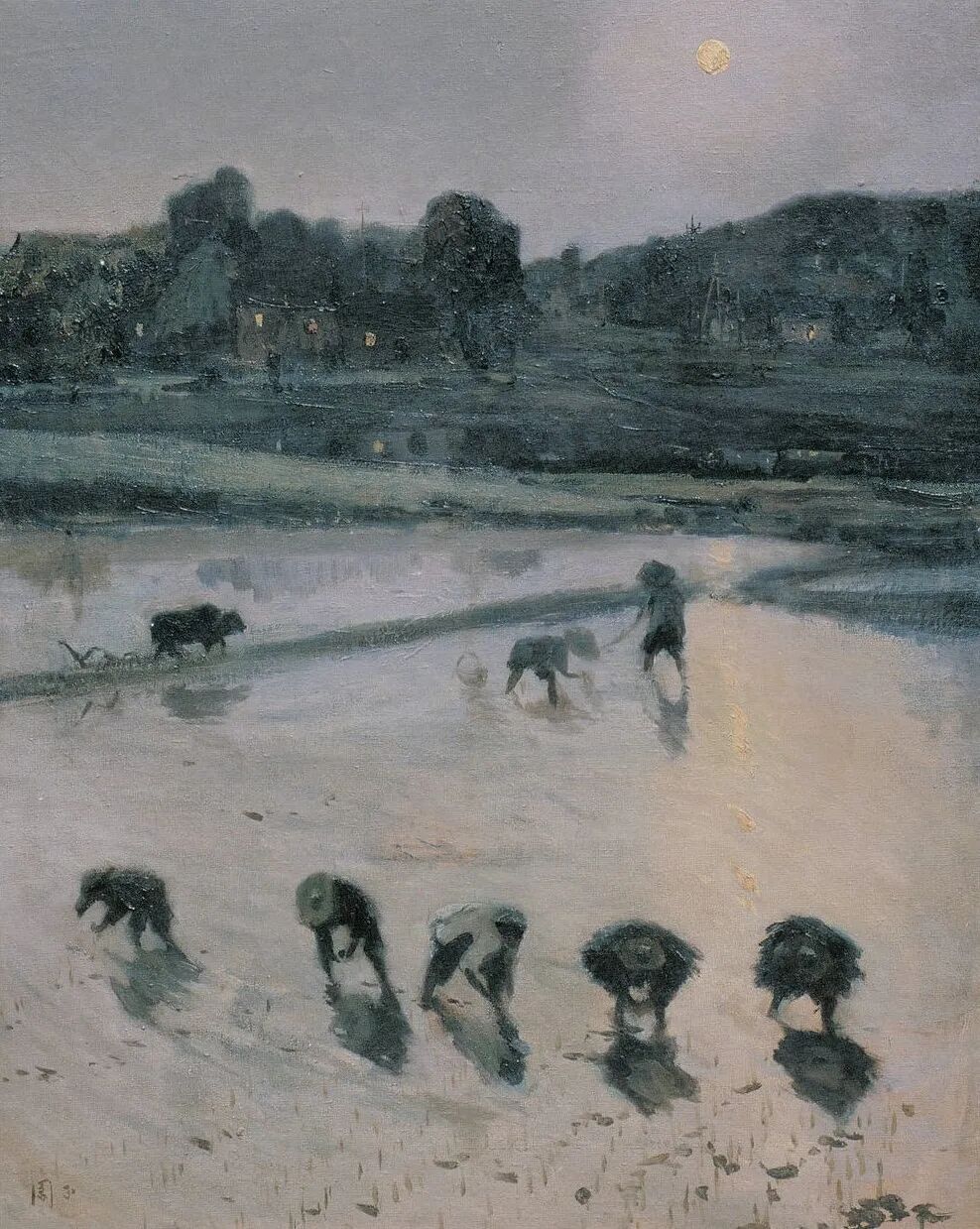 《沔阳水利工地傍晚》,钱延康(1913~1999)1965年
