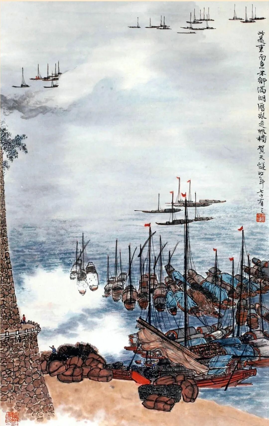 《欢歌声起退潮时》,钱松嵒(1899~1986)1962年