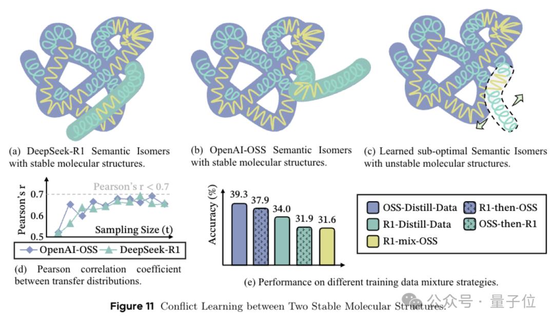 这在实验中有个很典型的现象,从R1和OSS两个不同强推理模型中蒸馏出的推理轨迹,语义层面的内容相似度高达95%,但混在一起训练,模型反而崩溃了。