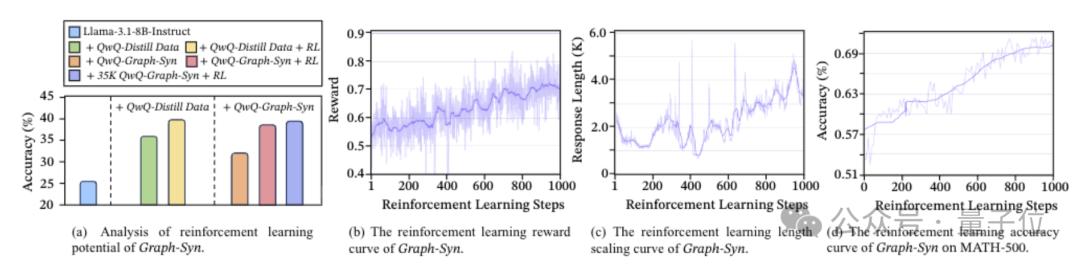 相比直接用蒸馏数据初始化的模型,MoLE-Syn版的在RL过程中收益持续增长,震荡也小得多。