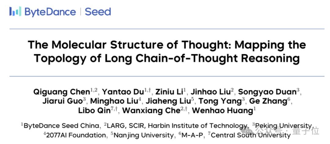 字节Seed在论文《The Molecular Structure of Thought》中首次给大模型的长链思维定义了分子式结构。
