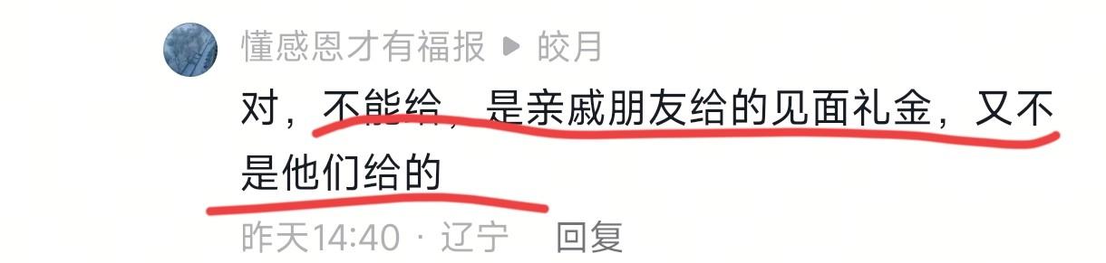 还有人说凭什么还?那些都是亲戚朋友的见面礼,又不是那三个人给的,没告他们遗弃罪就不错了,送出去的东西就这一点,还好意思要回去。就是不还随便他们怎么说。