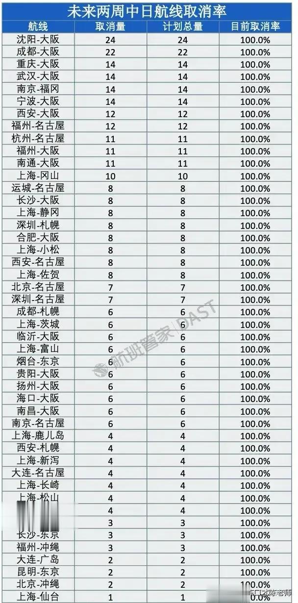 12月22日,根据航班管家数据显示,未来两周多达46条中日航线,已经取消全部航班。数据还显示,到2026年1月,中国大陆赴日航班取消量已达2195班次,航班取消率为40.4%。