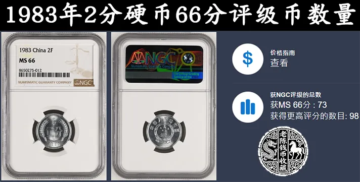 为啥这枚能拍出将近3000元的价格呢?主要是有三方面的原因。其一,它是一枚精制币,铸造工艺更优秀,发行量也更少,只有20000枚的发行量。其二,它在精制币中,品相更是顶尖,它是一枚NGC PF69分的评级币。82年的精制2分获得这个评级的只有45枚,更高分的更是只有1枚。