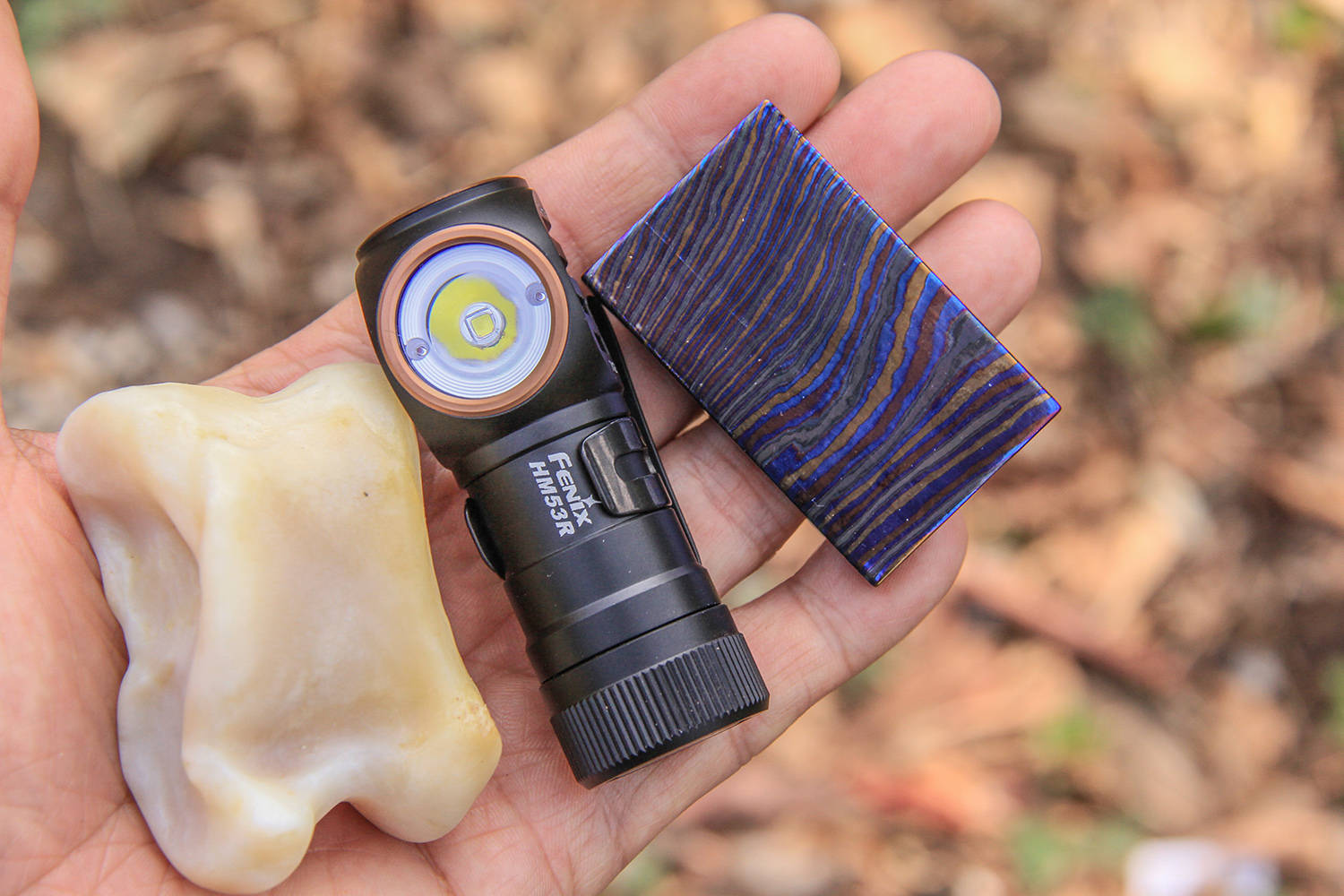 除了作为头灯佩戴以外,HM53R拿在手上也非常好用,身材娇小拿捏稳定,筒身直径小于灯头和尾部,便于着力,开观位于顶部,便于盲按操作,轻量化高颜值易使用。