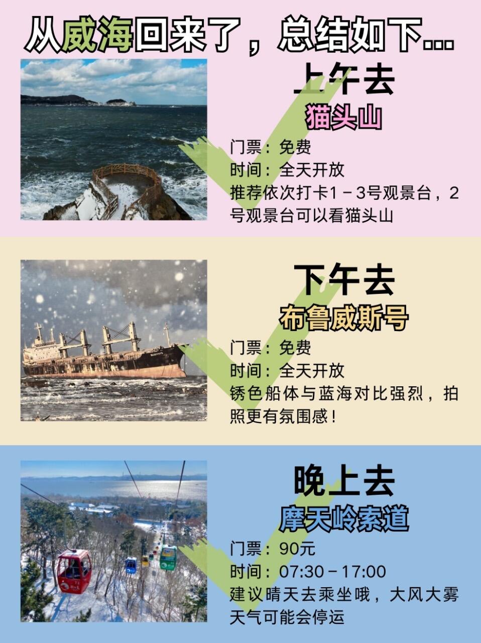 我去了好几天,觉得这十几个景点拍照和体验比较好,🔥特别是火炬八街、威海公园、国际海水浴场,这三个地方是我比较喜欢的,火炬八街有动漫的感觉、📸威海公园有大相框是肯定要去打卡的,是地标!还有国际海水浴场,大海跟雪花大搭配好神奇!只有自己去过才懂那种感觉!💫