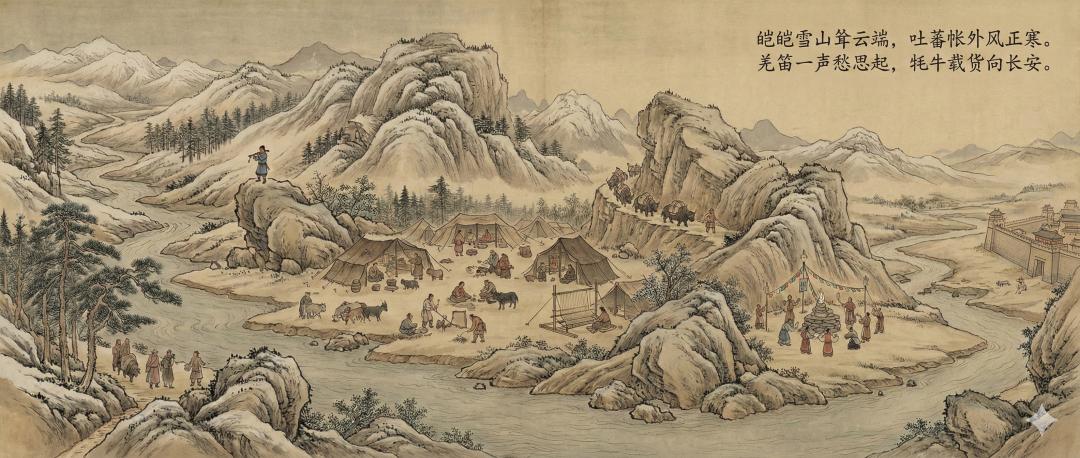 羌笛悠扬:居住在岷山一带的羌人吹奏羌笛,声音苍凉,寄托思乡之情。