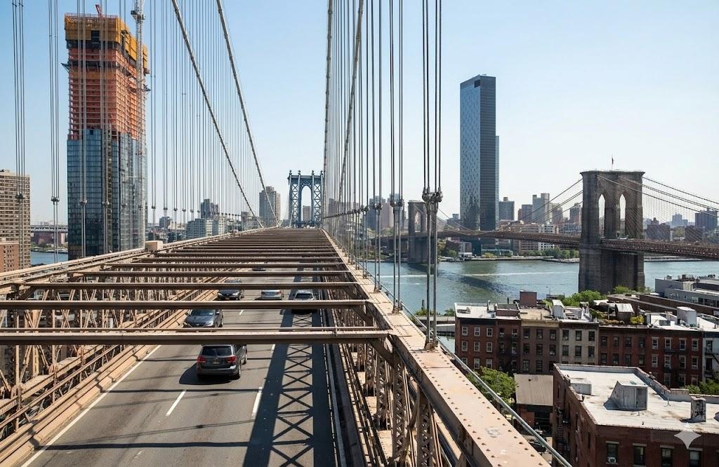 这个任务其实更加困难,但 Nano Banana Pro 却执行成功了,虽然观察视角并不是真的在车上。当然图中也出现了很明显的幻觉,右侧的大楼其实不存在,那是建好的曼哈顿广场一号,正好就是左侧正在施工中的大楼。