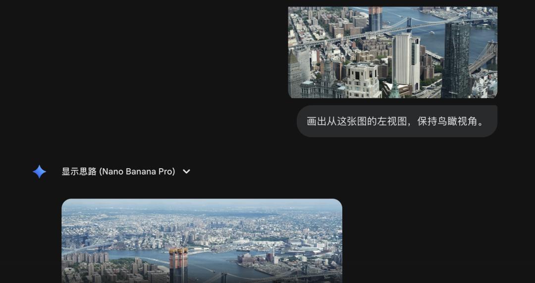 通过查看推导过程,发现 Nano Banana Pro 可以认出图中中央位置的大桥是曼哈顿大桥。