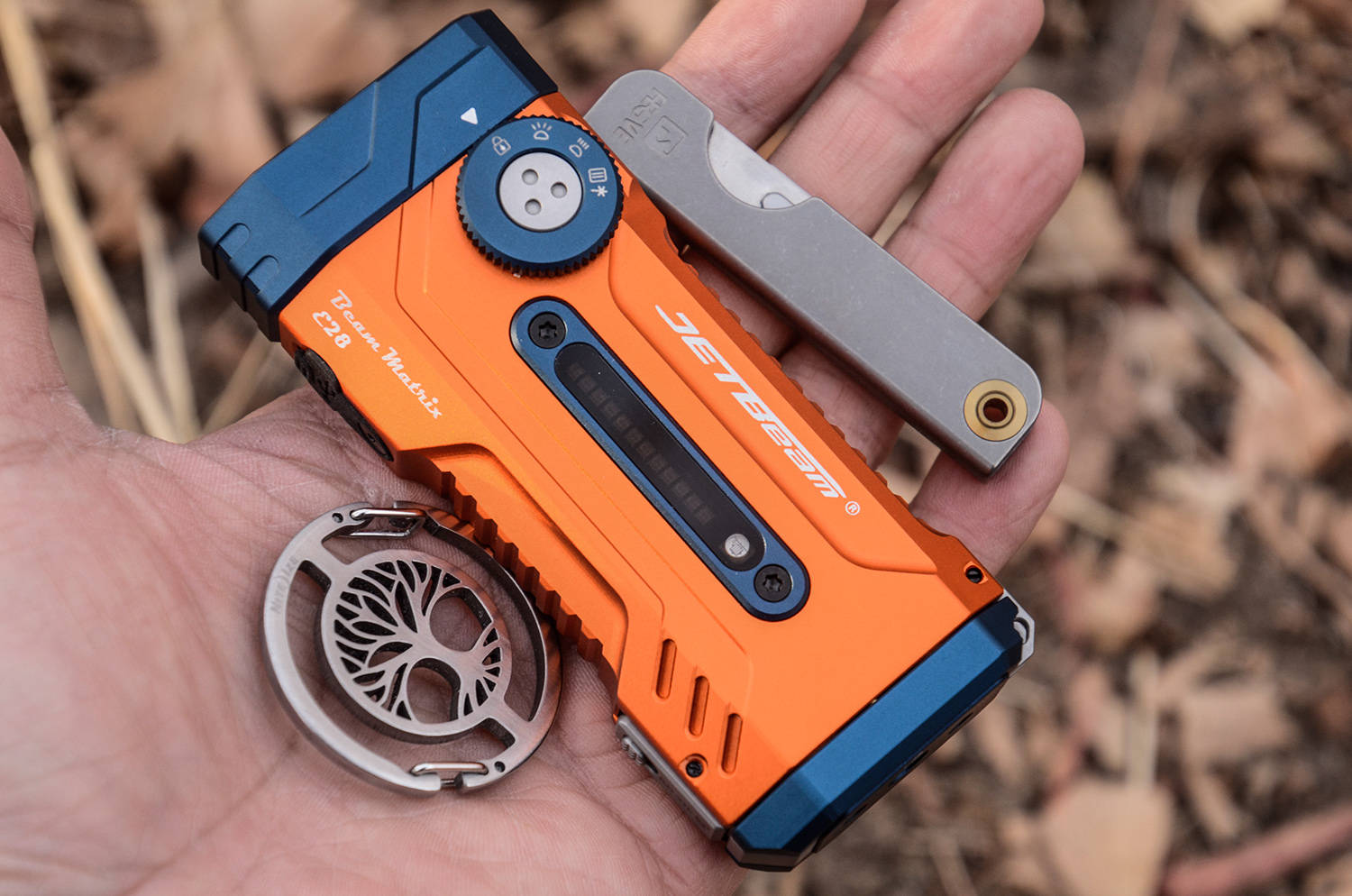 在满大街都是圆柱形手电的市场里,JETBeam E28独树一帜,辨识度直接拉满,采用当下最受欢迎的扁筒造型设计,整体线条干净利落、轮廓方正却不生硬,视觉上极具现代感与设计感,放在一众 EDC 装备里,自带高级气场。