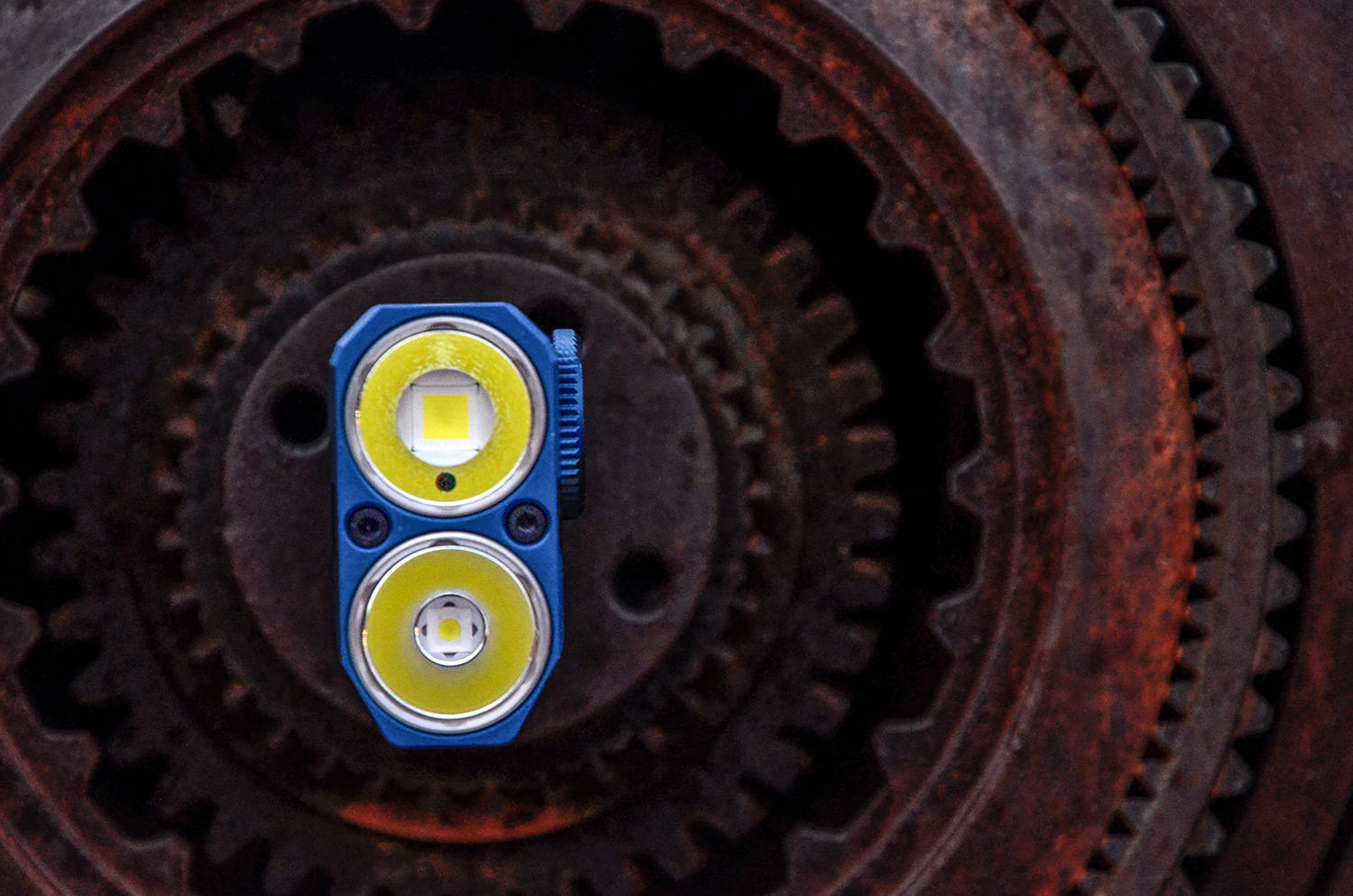 相邻两种模式间的转动间隔约为40°,操作逻辑非常简单,拨盘在什么位置就是什么模式,通过转动就能在聚光、泛光、副灯间快速切换,而且两个主灯档位独立,切换时不会改变记忆档位,方便使用者快速进入自己需要的聚光或泛光亮度。