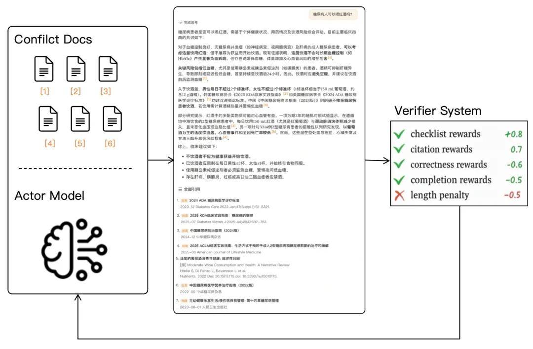 「验证 AI 的回答,比自己查书还累,」这是很多医生使用通用大模型时的抱怨。在医疗场景中,引用是可信度的底线,但在大模型领域中,人们对于 AI 生成内容的引用准确性始终缺乏系统性优化路径。很多大模型列出的引用内容,指向的文献或段落并不支持当前表述,AI 并没有真正理解和呈现证据立场。