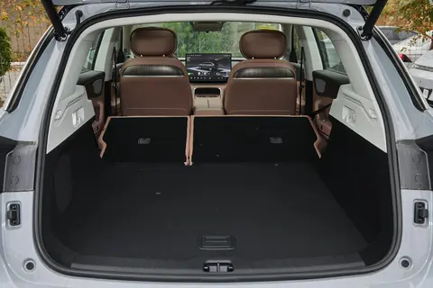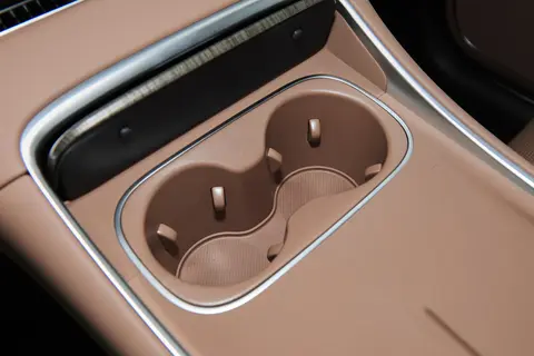 座椅用的是仿皮材质,虽然不是Nappa真皮,但摸起来手感不错,柔软度和支撑性都可以。主驾座椅能6向电动调节,腰部还有4向电动支撑,平时开车可以调到舒服的姿势;夏天有通风功能不会闷得慌,冬天有加热功能一上车就能暖乎乎的,这点对北方的朋友很友好。不过对比高配车型,少了座椅按摩和记忆功能,要是经常开长途,没有按摩功能可能会觉得有点累,这也是入门版车型的一个小遗憾。车内的储物空间设计得也很实用,中控台下方有个16.3L的镂空储物区,放个手提包、孩子的零食袋都很方便,顶部还装了柔光照明灯,晚上取东西也能看得清清楚楚。