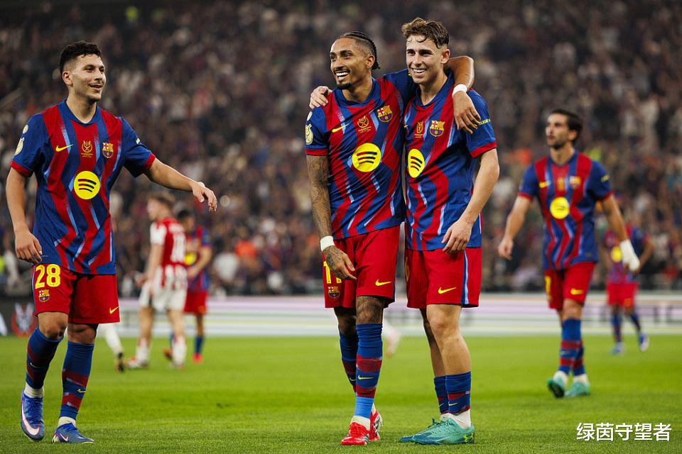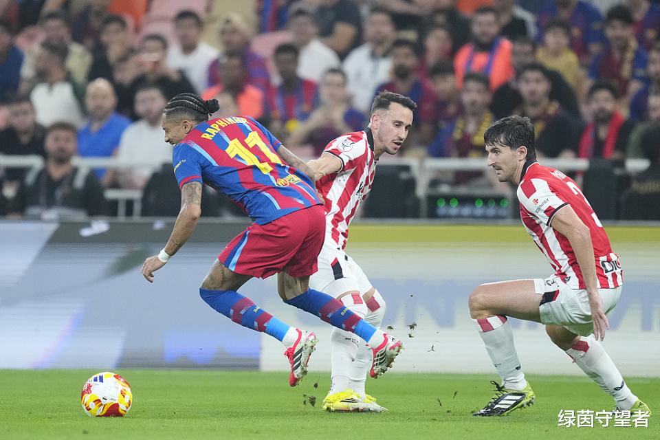 2026年1月8日,西班牙超级杯半决赛,卫冕冠军巴萨5比0吊打毕尔巴鄂竞技,巴萨神锋拉菲尼亚独中两元,贡献出MVP级别的状态。