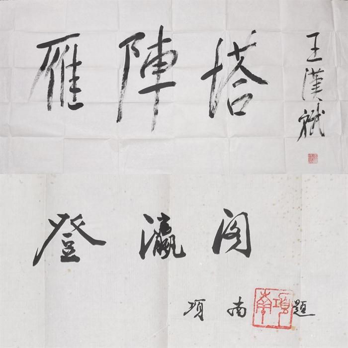 近日,莆田市博物馆迎来两件重要文化藏品——全国人大常委会原副委员长王汉斌的行书作品《雁阵塔》和福建省委原第一书记项南题写的《登瀛阁》,这两幅珍贵墨宝由莆田籍资深文化人士郑金铸无偿捐赠。
