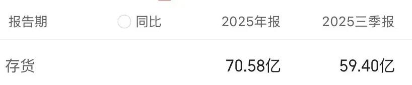 存货环比继续大幅增长:截至2025年底存货70.58亿,比截至三季度59.4亿增加了11.1亿。