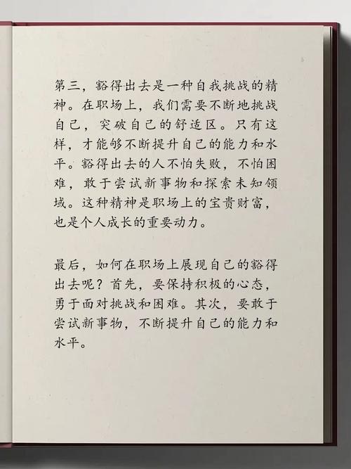 真正的“豁得出去”,应当是敢于突破舒适区的勇气。它可能表现为:在会议上坚持表达不同观点;承担超出职责范围但有成长价值的项目;在关键时刻站出来承担风险与责任;甚至是在职业十字路口做出非传统的选择。