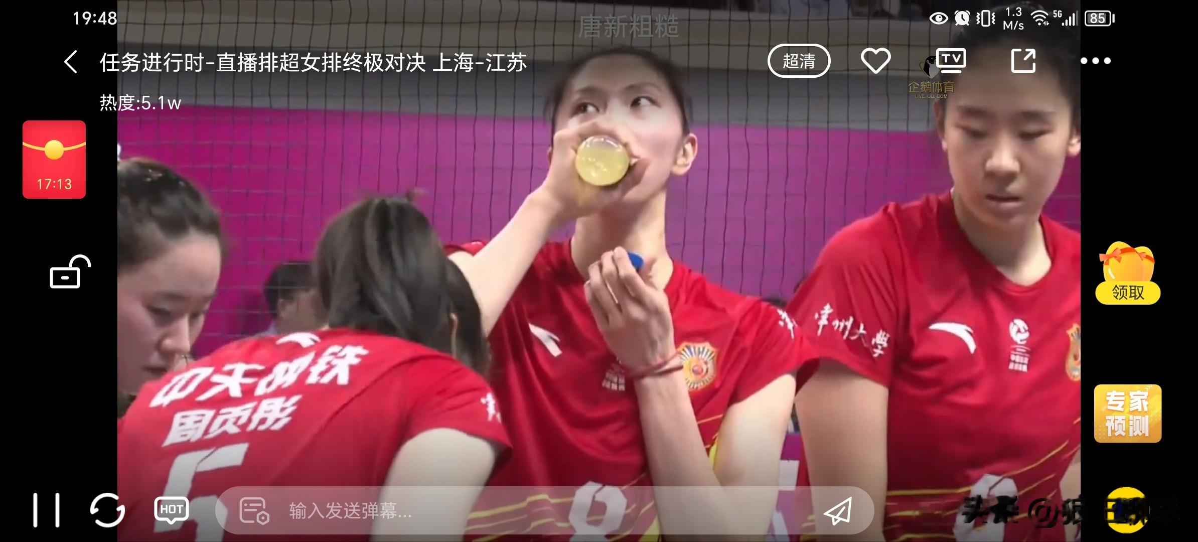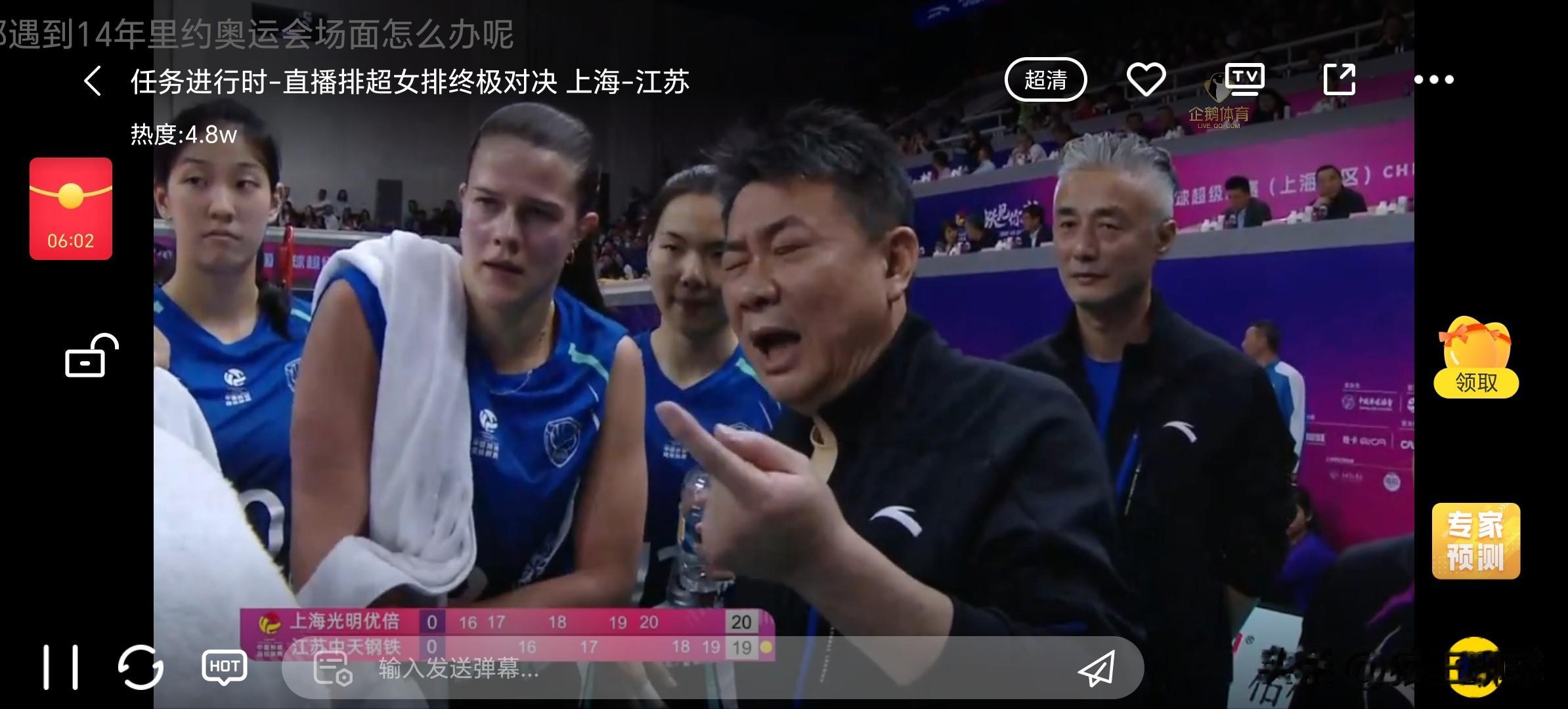 赵喆熙换上发球,万梓玥背飞打中,陈厚宇快攻打中,江苏用范伯宁换副攻上来发球,沃隆科娃进攻直线打中,唐欣进攻得分19-16,范赖克进攻斜线打中,蔡斌换上欧阳茜茜发球,周页彤进攻底线得分20-17。高意背飞得分,范赖克发球,吴梦洁飞一传,范赖克已经3个发球得分了。