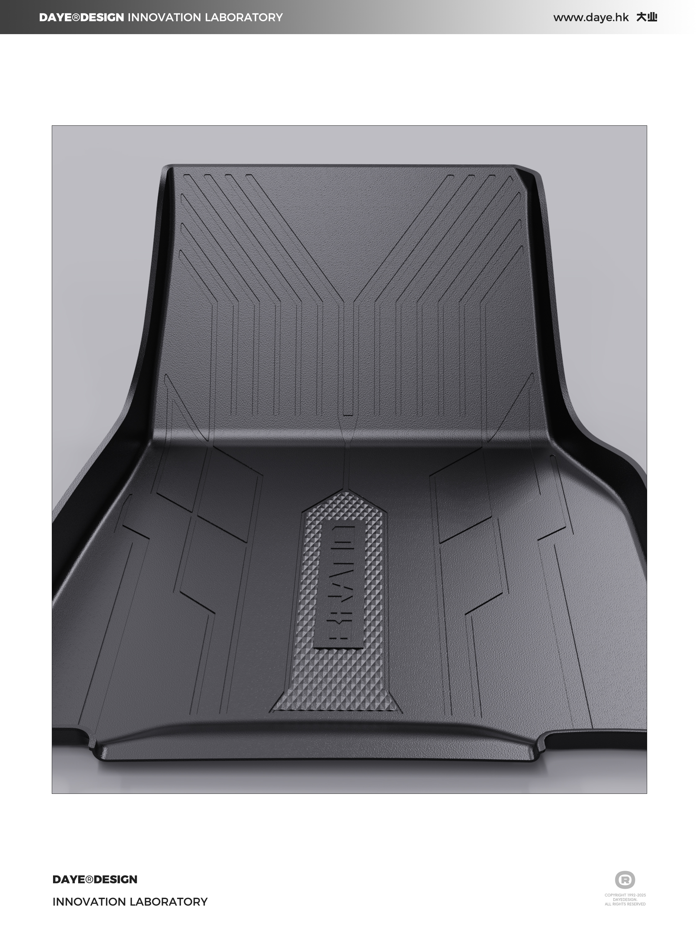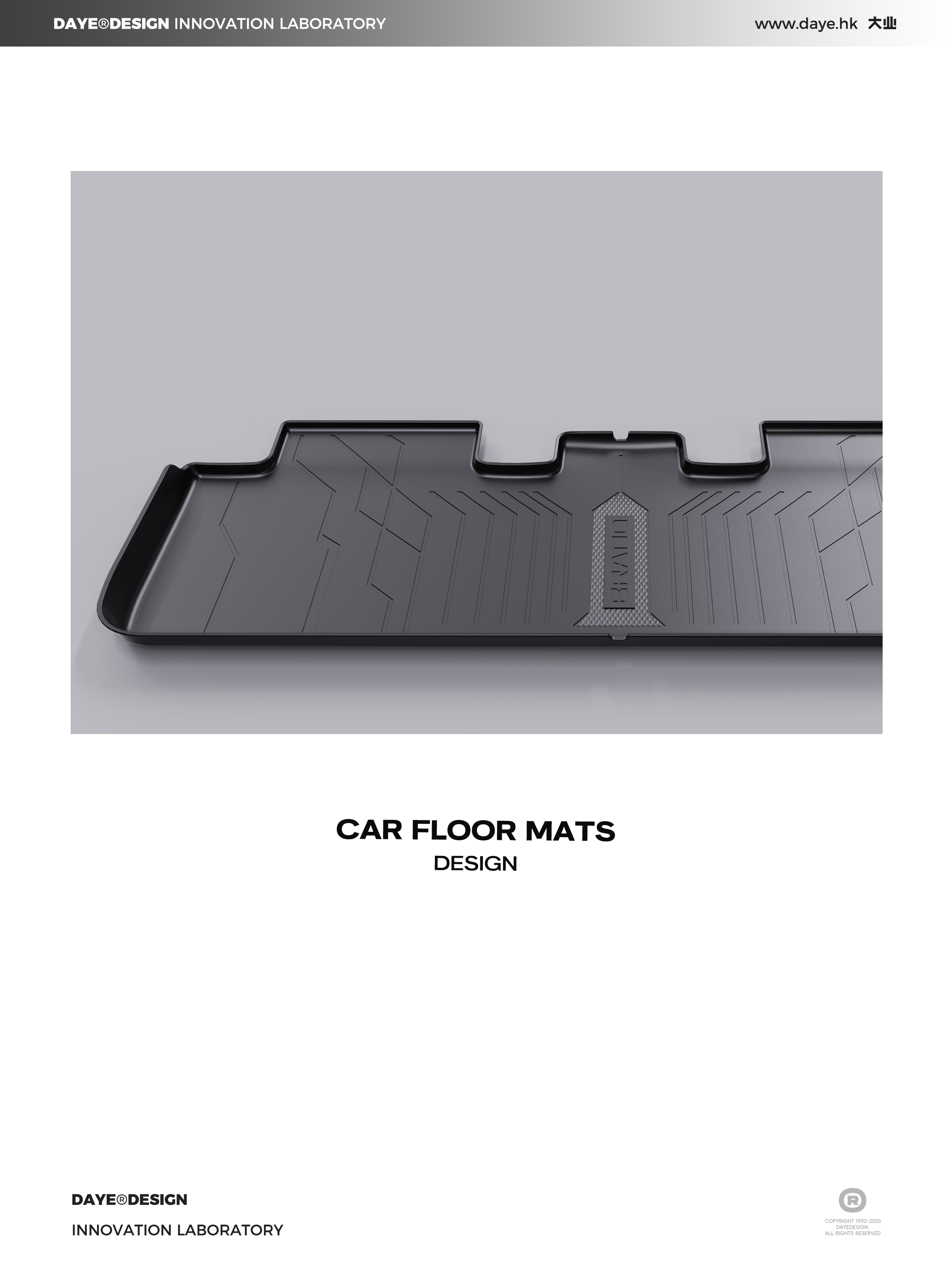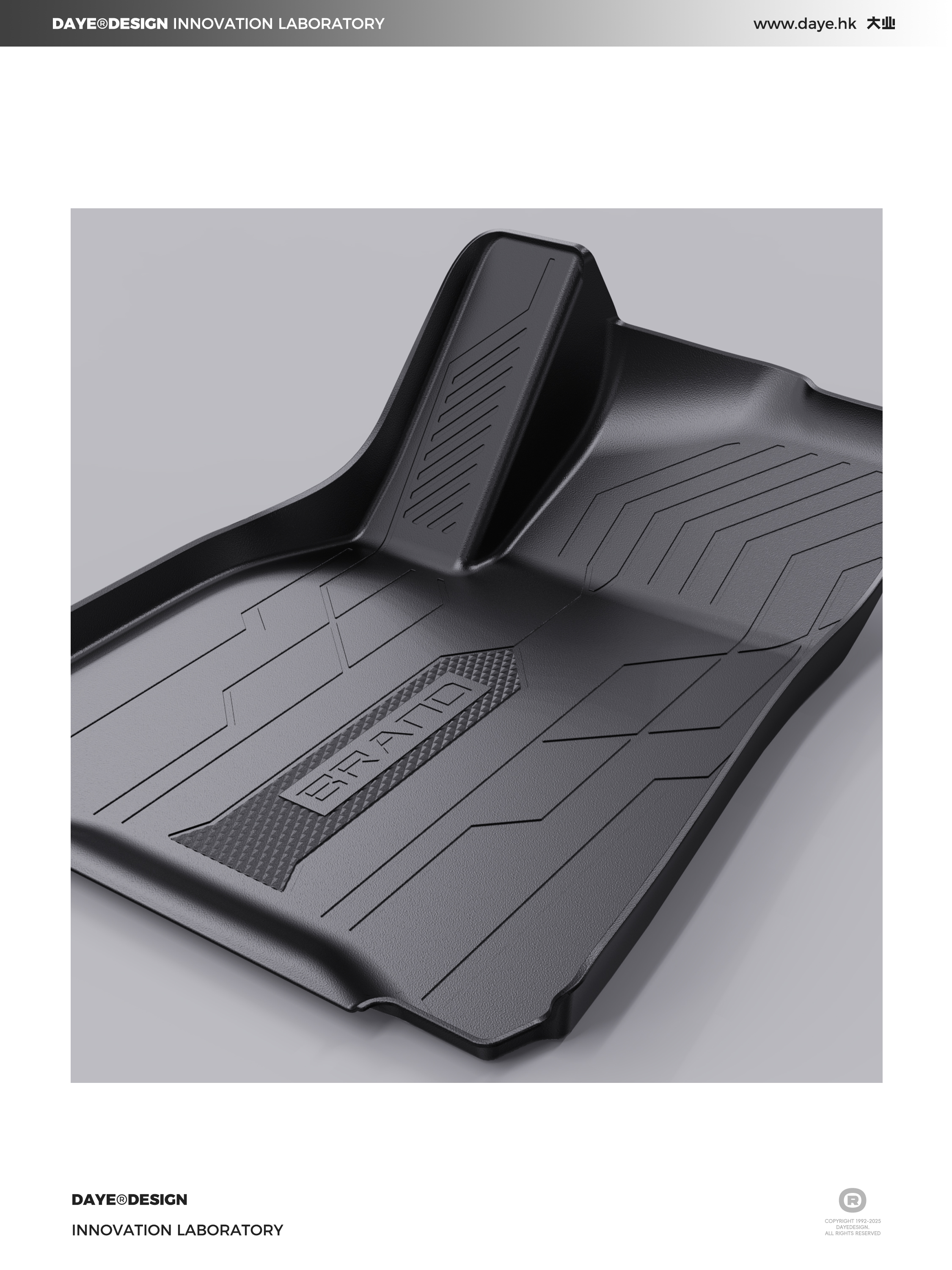 整体遵循双层嵌套的贴合造型:下层采用全包围立体结构,精准适配车型地板轮廓,既避免污渍渗入原车地毯,又通过高边设计形成储污区,强化清洁实用性;上层为可拆洗脚垫,轻薄形态兼顾脚感舒适度,同时实现局部清洁的高效体验,适配车载场景的高频使用需求。