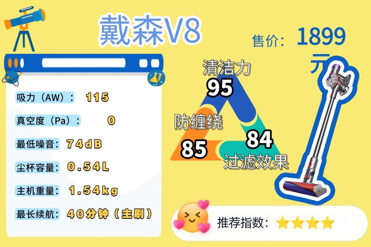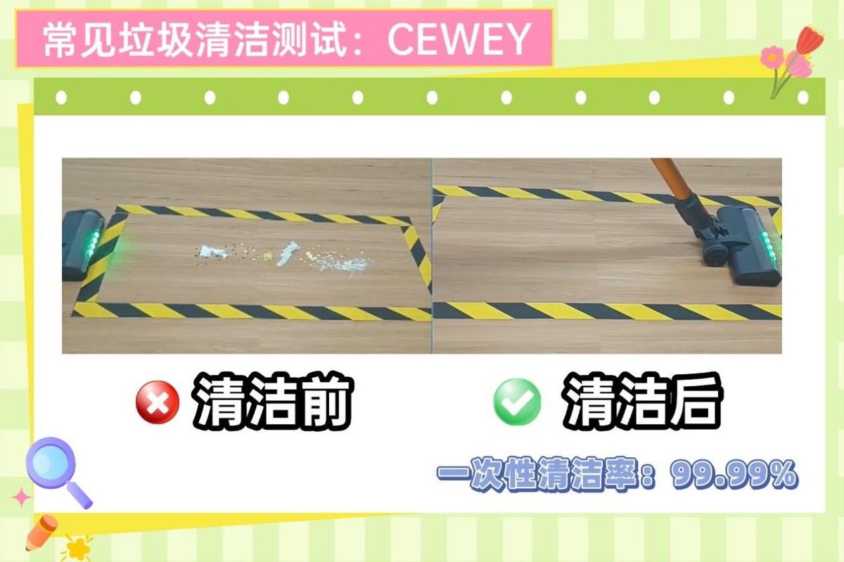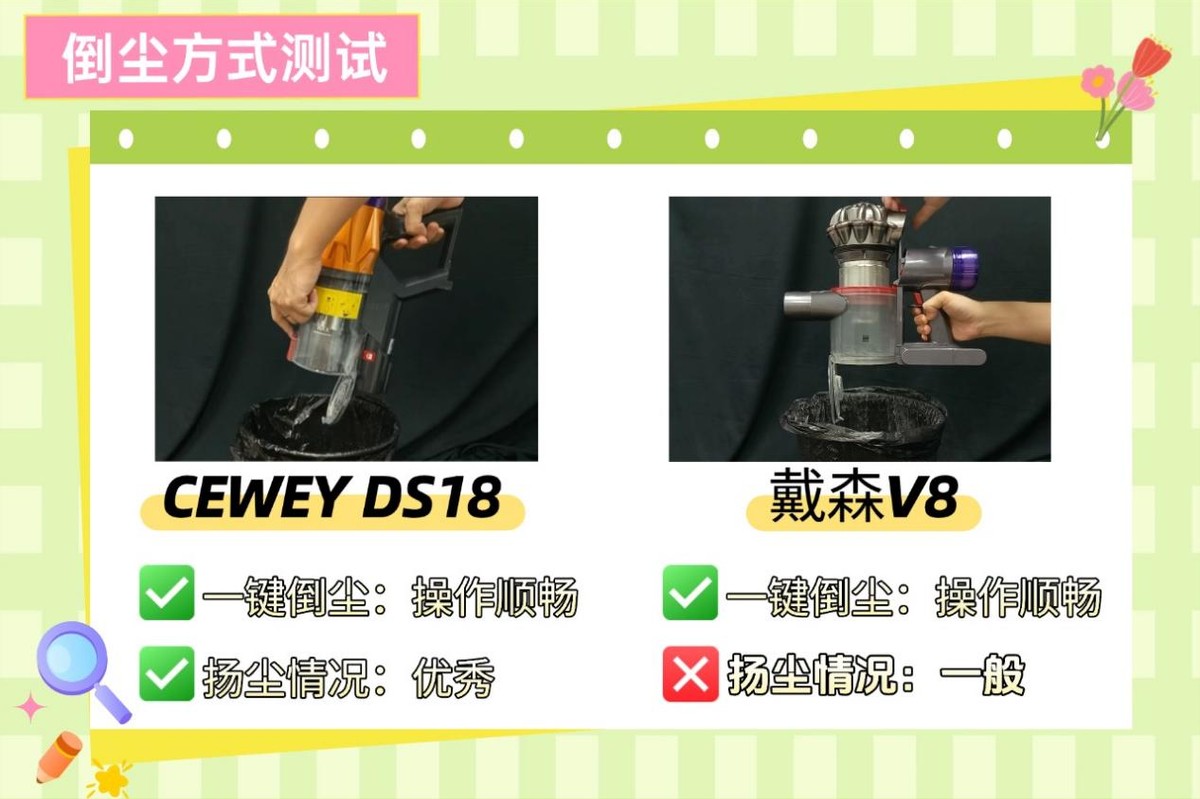 清洁力表现优秀:CEWEY DS18 无线吸尘器清洁力表现良好:戴森V8 无线吸尘器