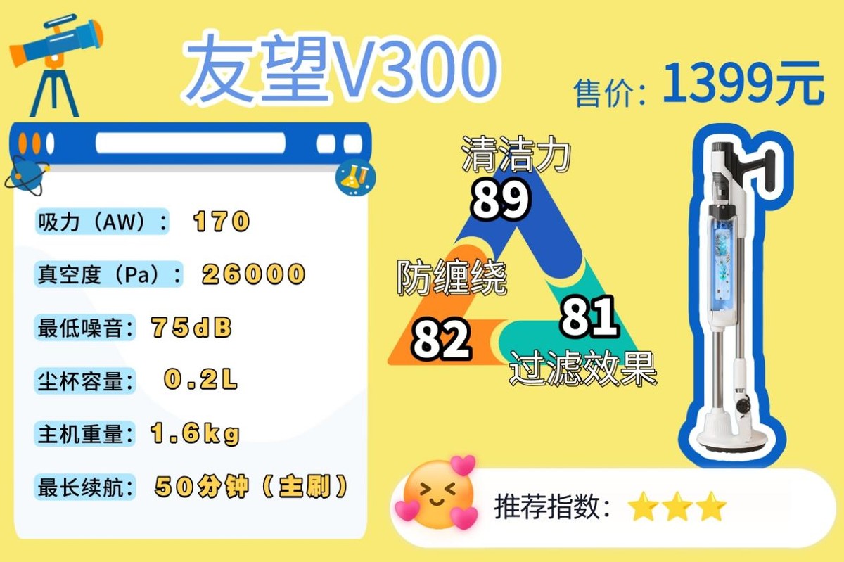友望V300:带有自集尘功能,不用亲自动手倒尘,很适合不想脏手的懒人党,不过后续的维护和更换内置尘袋还是比较麻烦,得看自身的需求取向。
