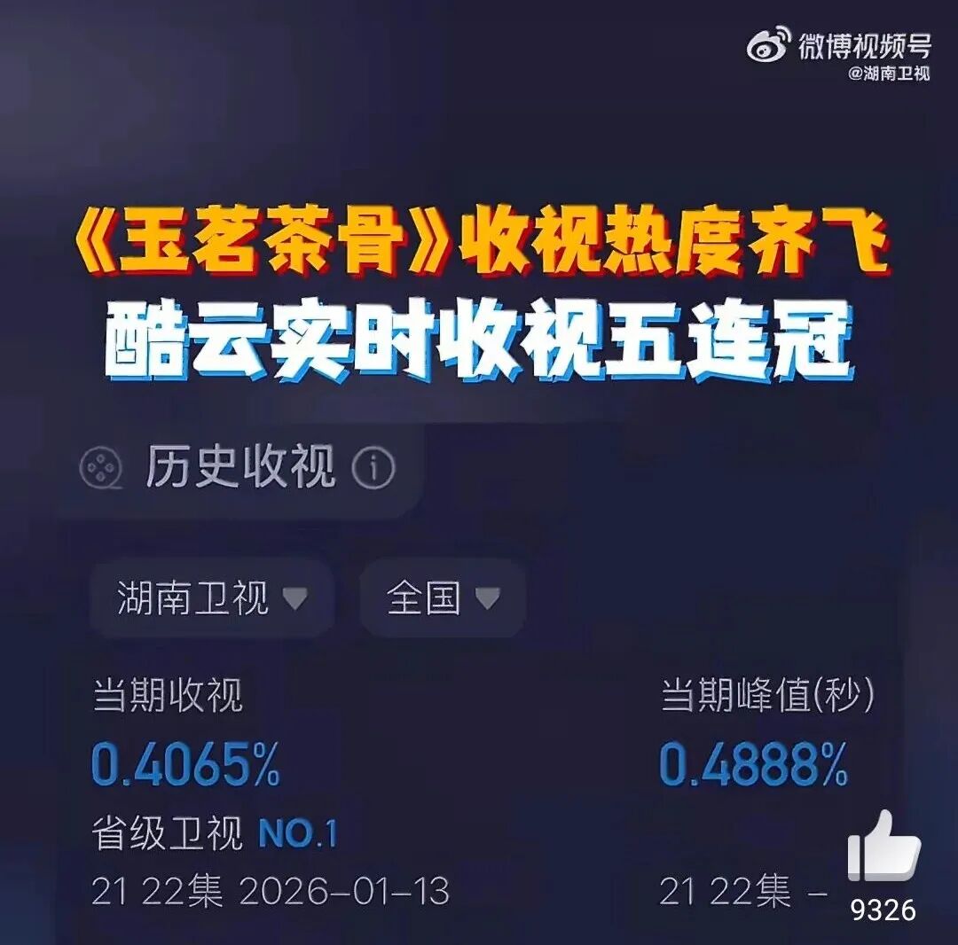 收视成绩还算不错,让湖南卫视在同时段省级卫视中名列TOP1,实现了收视五连冠。就是这网播成绩不够给力,云合集均才一千多万。