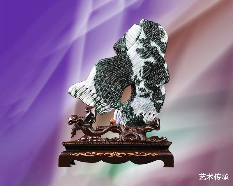 诗性的中国,怎么可能没有温润、浪漫与真爱呢!翡翠巧色艺术作品《情暖人间》像一首爱的颂歌,温暖着14亿中国人。作品以紫罗兰墨绿飘花翡翠,爱心赋形,雕刻出一条飘动的围巾。这围巾飘动在剧烈的温差里,飘动在历史转身的刹那,飘动在一个时代对另一个时代的凝望中,也飘动在玉雕师方卡东手上,飘动在14亿中国人心上。