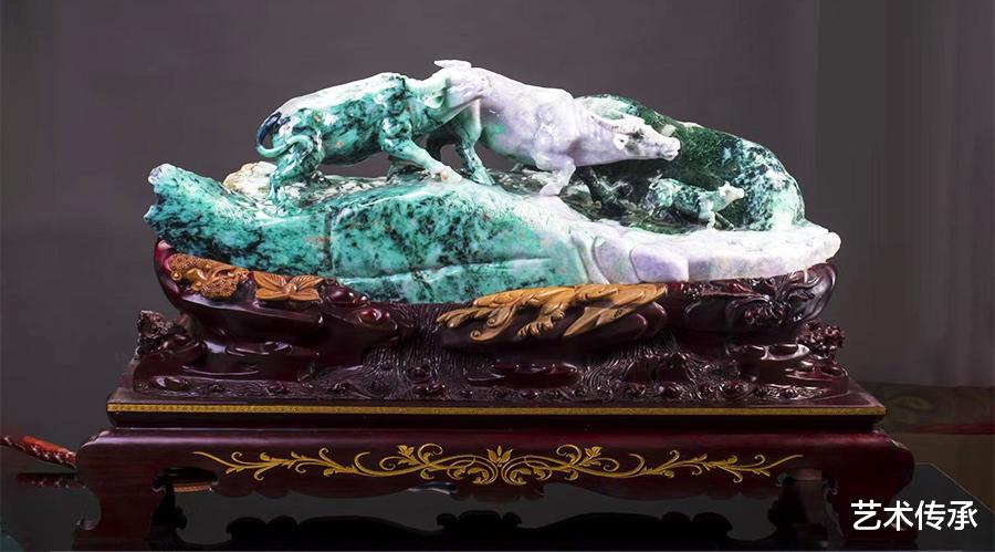 中国传统祥瑞文化大型翡翠圆雕组件艺术