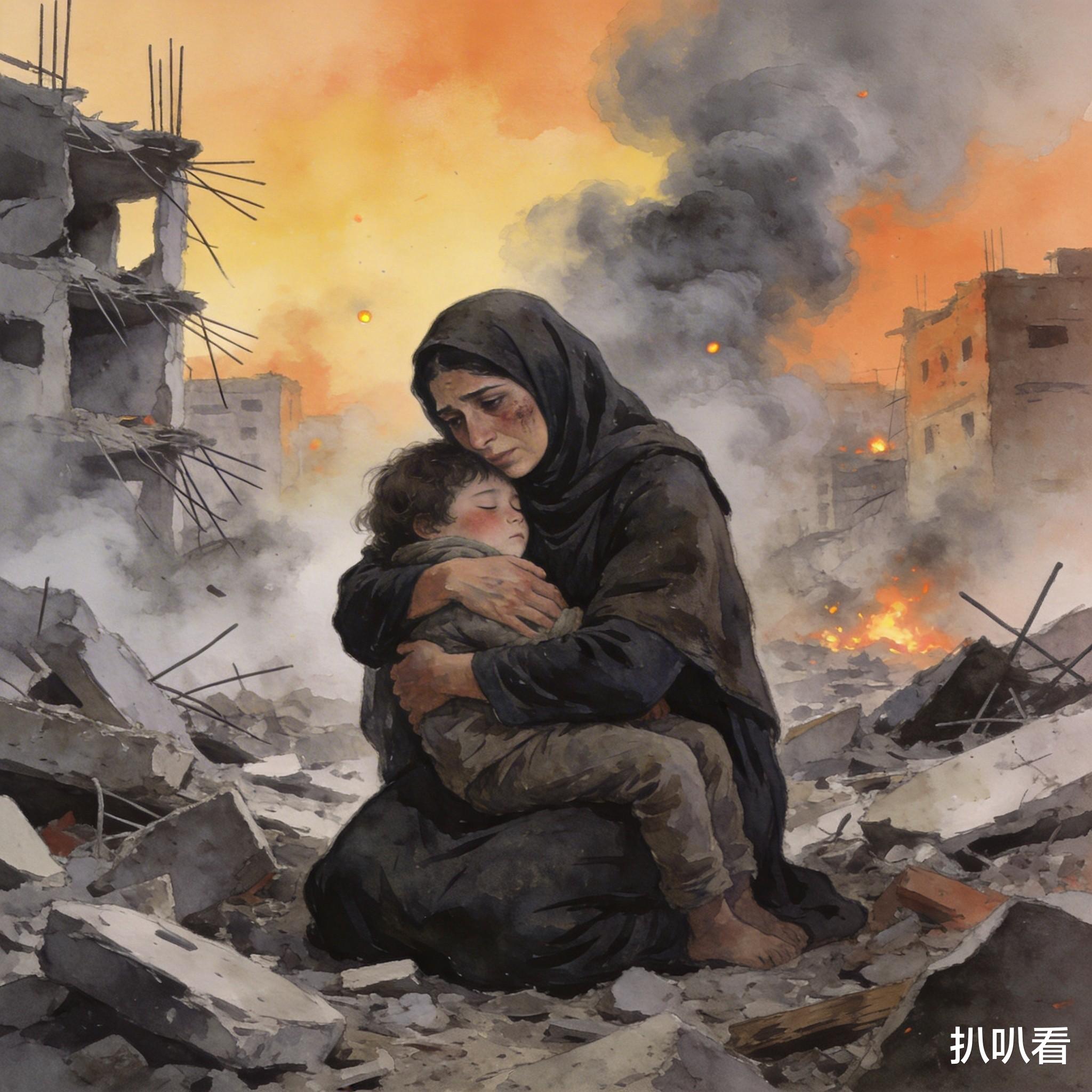 早上刷到中东局势的新闻,第一张图片是母亲抱着孩子站在废墟里。