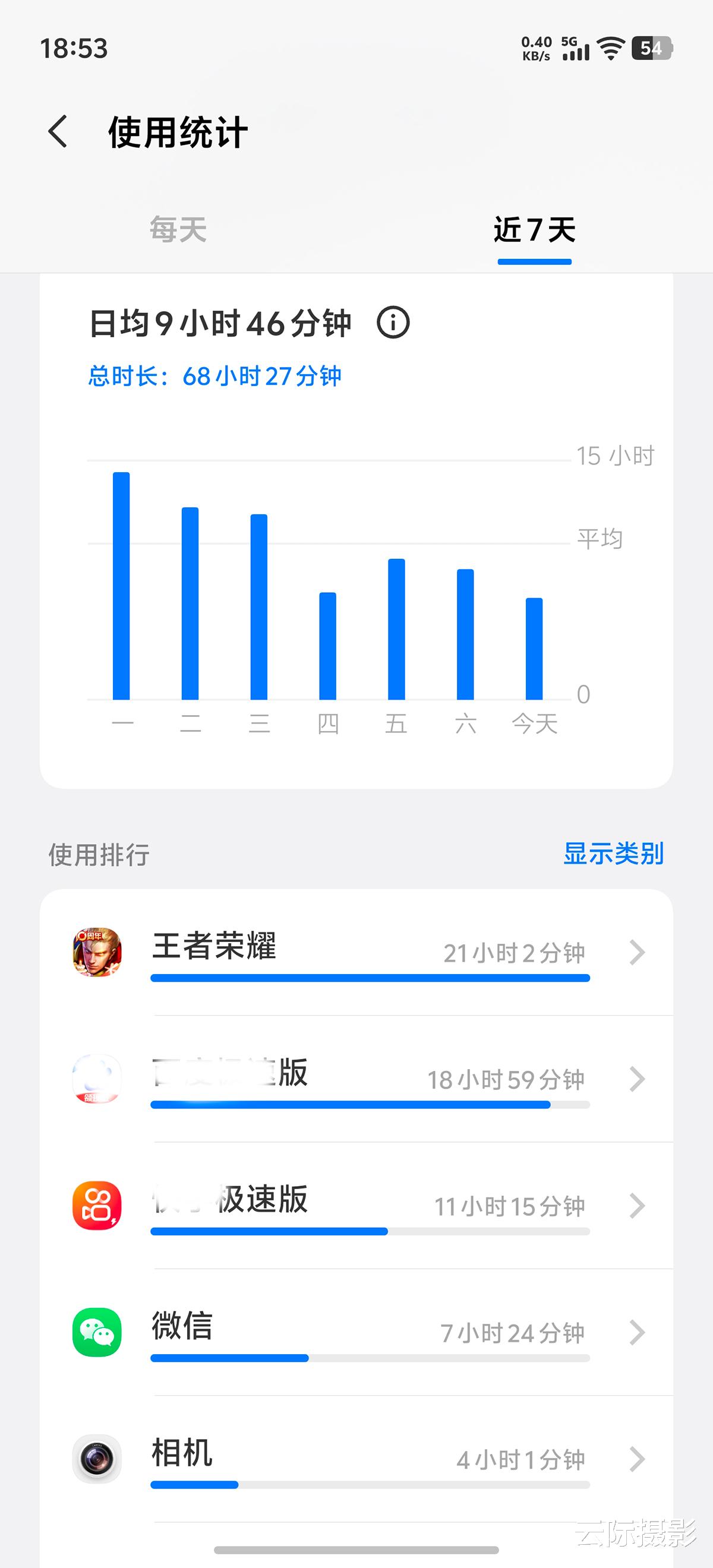 可以统计每天的使用情况或7天的统计情况,游戏和刷视频的情况下,有个好屏幕会提升使用手机的好感度。