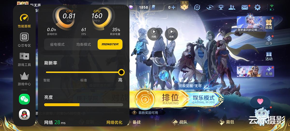 游戏魔盒的配置方面,开启游戏后直接调整到Monster模式,刷新率最高的情况下,游戏顺畅感明显并且配合2k屏幕冲击感也更真切。