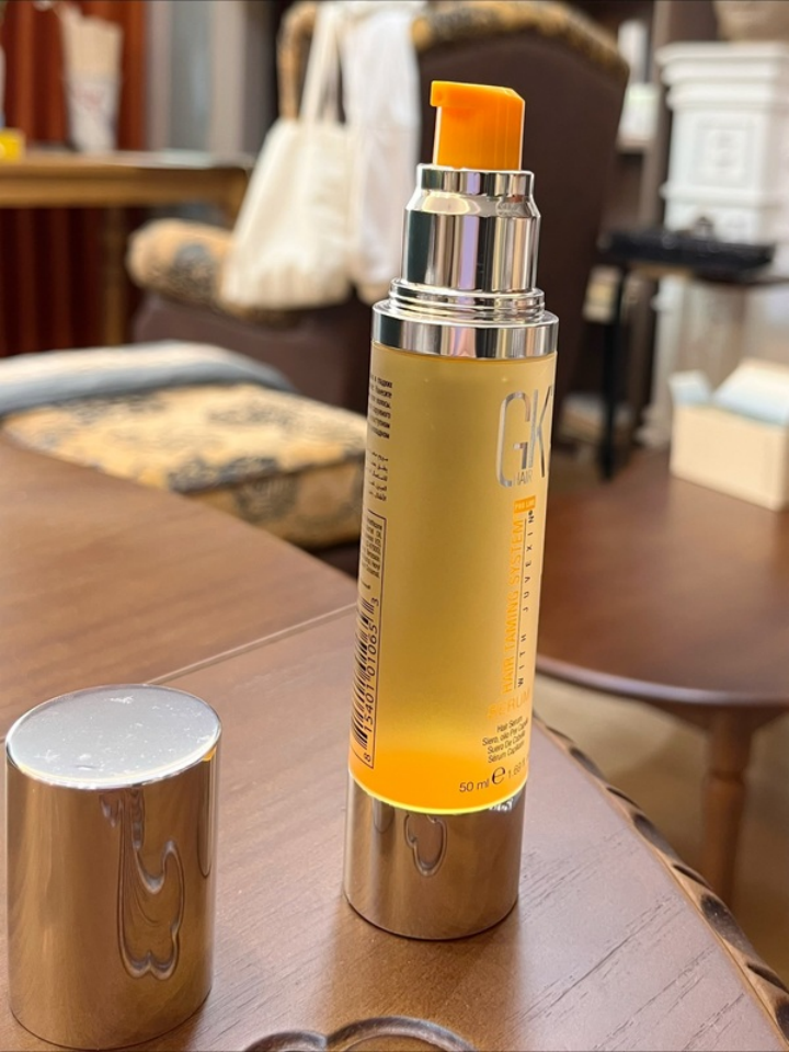GK护发精油2018年起在东南亚一些生活类论坛开始出现讨论帖,主攻的方向不是大众护发而是针对湿度高、日晒强环境下发丝表层状态维持的研究,早期产品测试阶段曾与几位发型师合作收集使用反馈,外盒用色偏冷静的灰绿与雾金搭配。