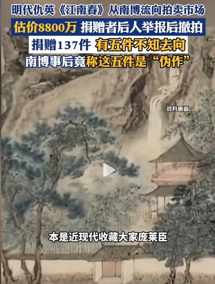 更扎心的是,藏品《江南春》在被鉴定“赝品”后,时隔几十年后,2025年现身北京拍卖行,估价8800万元,《江南春》捐献者后人发现后,表示痛彻心扉。