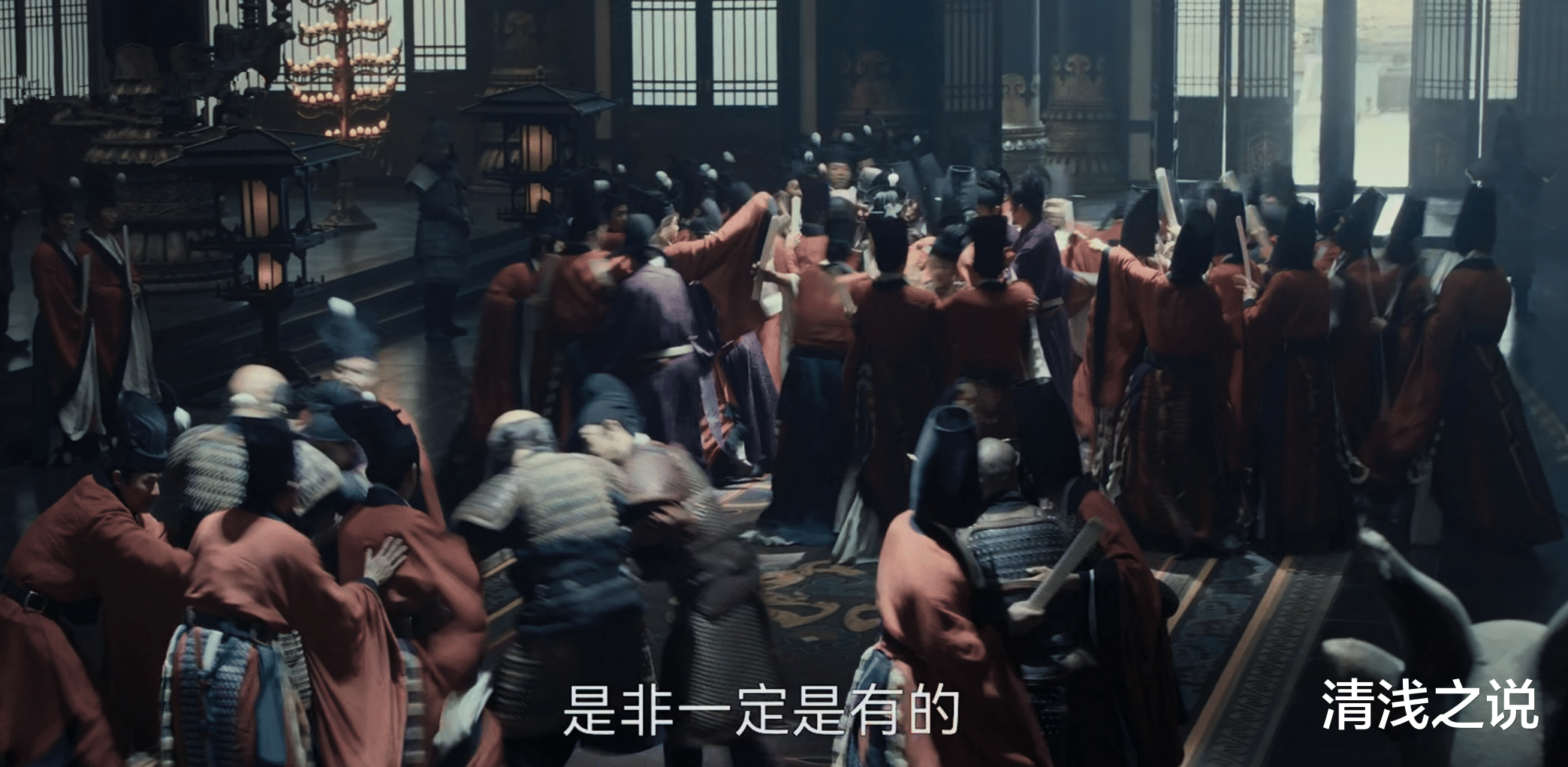 此时,张彦泽嚣张地走到钱弘俶旁边说很想尝尝对方是什么味道。钱弘俶一点也不怕这吃人的家伙,冯道的护卫以及范质、水丘昭券等人倒是担心张彦泽把钱弘俶吃了,紧紧拦住张彦泽。钱弘俶觉得时机来了,趁机拨出匕首往张彦泽身上捅了一刀,还说“是非一定是有的,千秋史册在上,江山黎庶在下,万古不易。”