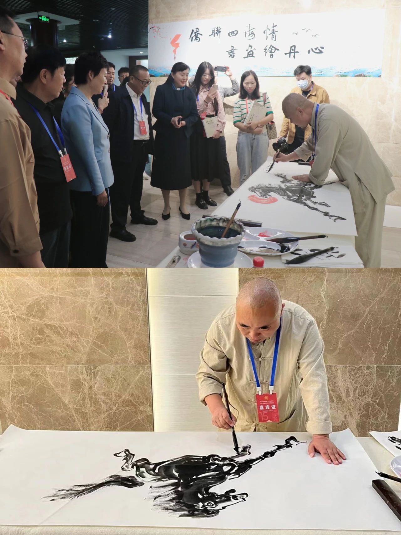 此次书画展以“侨联四海情·书画绘丹心”为主题,汇聚了海内外优秀的国家级书画作品263幅,涵盖书法、国画等多种艺术形式。书法作品中,有笔走龙蛇的草书、刚劲有力的楷书、古朴醇厚的篆书等,墨韵流转间尽显中华文化的博大精深。国画作品则题材丰富,有壮丽的山水画卷、细腻的花鸟小品、生动的人物肖像等,海内外书画家们用笔墨勾勒出祖国的大好河山和生活中的美好瞬间。作品色彩斑斓,风格各异,或写实逼真,或抽象浪漫,展现出独特的艺术魅力。每一幅作品都是书画艺术家们精心创作的结晶,无不展现出高超的艺术水准与独特的审美价值,反映了作者对祖国的热爱、对家乡的思念以及对美好生活的向往。